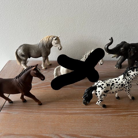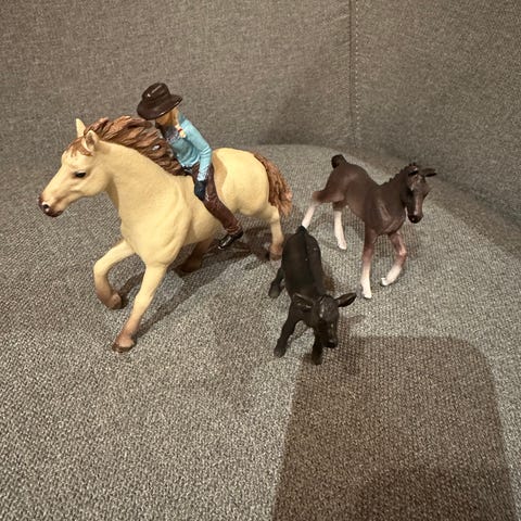 Schleicher dyr og ridder. 4 stk heste, en giraf, et æsel, 1 ridder, 1 ridderhest og 2 hunde. Sælges samlet. Fin og god stand.