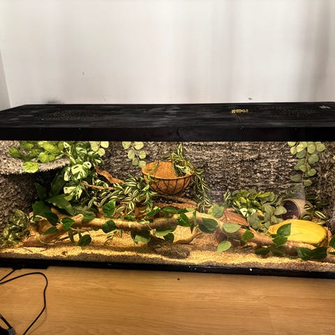 Stort terrarium. Længe 240cm høj 65cm Dyb 95cm. Mulig transport mod et ekstra gebyr