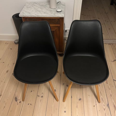 Spisebordsstol er i farven sort/natur eg