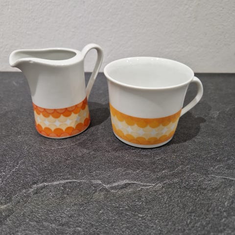 Retro Flødekande og bakke, Tysk Bavaria, Gul Flødekande...Dolly...75 kr nu 50 kr