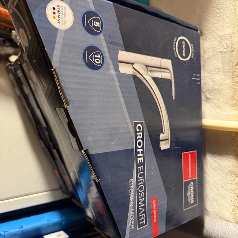 Grohe køkkenarmatur i krom med fleksible tilslutningsslanger. Passer til standard køkkenvaske. Materiale: metal med kromfinish. Farve: sølv/krom.