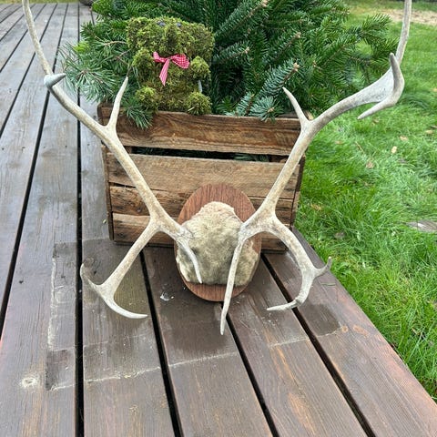 Stor flot opsats , måler ca. 75 cm fra bunden af plade til spidsen af opsats. Måler ca. 55 cm mellem spidserne på opsats. Måler ca. 75 cm det bredeste sted på opsats