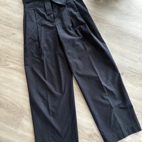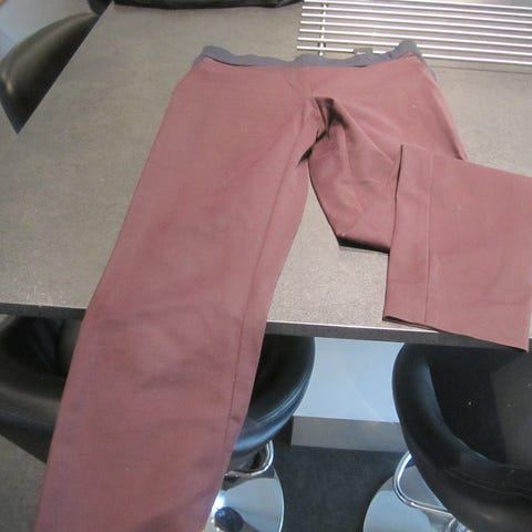 COS bukser i rust-brun farve, størrelse 34. Ekstra vidde. Lynlås i siden og stumpede.