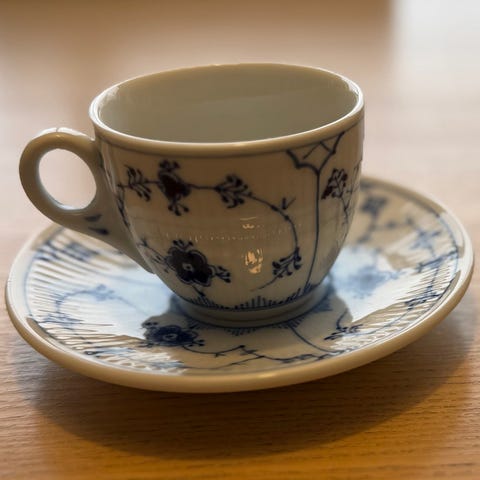 Arabia kaffekop og underkop i keramik med en kombination af brune og beige farver. Sættet består af en kop med hank og en matchende underkop. Velegnet til servering af kaffe eller te. Kan evt. leveres i Kbh. området efter aftale.