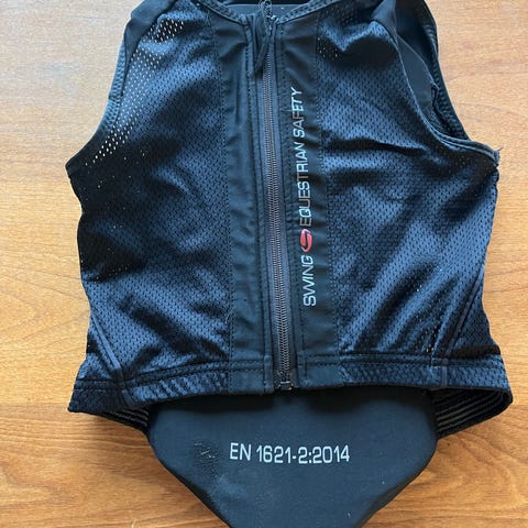 Swing F2 beskyttelsesvest i sort farve designet til unisex brug. Vesten har polstrede beskyttelsespaneler på front og ryg for ekstra sikkerhed. Materialet er fleksibelt og åndbart med justerbare stropper for optimal pasform. Velegnet til aktiviteter, hvor kropsbeskyttelse er nødvendig.