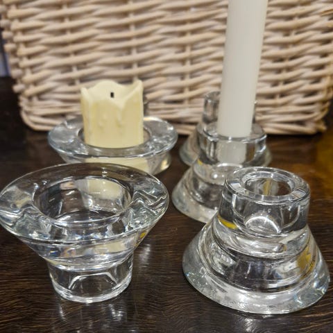 Kubeformede glasstager til kronelys.