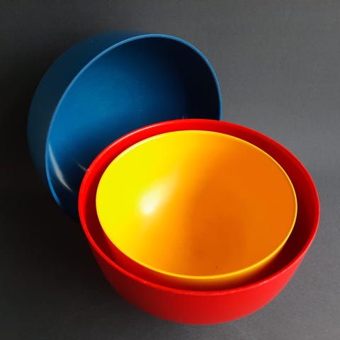 Retro ROSTI skål nr. S 752, udført i hvid plast. Diameter 14 cm, højde 7,5 cm, vægt 147 gram. Skålen fremstår med brugsspor og mindre skår på kanten.