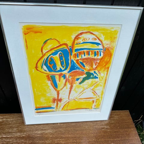 Der er her tale om et flot abstrakt retro farvelitografi. Det er desværre ikke lykkedes mig at aflæse hvem kunstneren er?