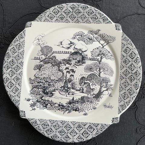Sort/hvidt motiv med klassisk Wiinblad-illustration og signatur på bagsiden.