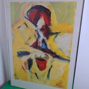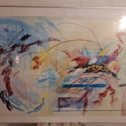 Kunstværket viser abstrakte former i akvarelteknik med bløde, flydende linjer og nuancerede farver. Det er indrammet i en gylden ramme.- Bemærk at mail, chat og beskeder ikke besvares, og varen skal købes på knappen "Gå til varen". Efter reservering af varen har du 10 dage til at afhente den i den butik, varen er på lager i.