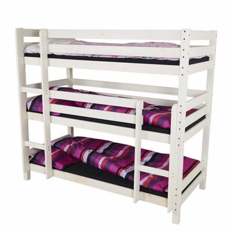 Vi er i gang med at lave om i værelset og sælger derfor køjesengen. Vi har ekstra brædder til sengen så den kan købes i en af de to længder. 90x200cm eller 90x160cm. Bemærk den pris i annoncen gælder for seng i en af de to måler. Hvis du vil have dele til begge størrelser så er prisen 2000kr ekstra. Med skrå stige. 2 stk. sengeheste følger med. Sengen hedder Fanny køjeseng og kommer fra tidligere Et hjem Sanders møbler. Pæn og velholdt stand. Meget robust seng udført i kvalitets materialer som holder i mange år. Der følger to brugte skummadrasser med. Sengen kan stå som to separate senge. Kan evt. leveres og montering gratis til prisen. Der skal betales 1000kr forud i forbindelse med levering så vi ikke kører forgæves. Vi har flere dele til sengen så spørg hvordan du vil have den ser ud så prøver vi og se om det kan lade sig gøre. Har ekstra dele så den kan blive en helhøj, høj, mellem høj seng.