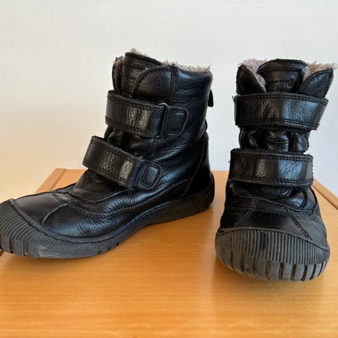 Læderstøvler med uldfoer. Kan bruges af børn og voksne.
