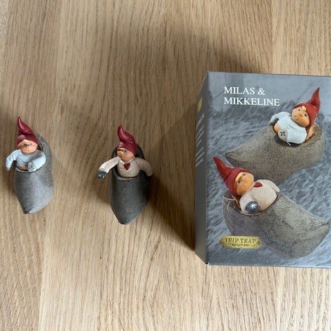 Pyntenisser, Trip-Trap nisser. Har aldrig været i brug. Kassen er bulet, men alle nisser er intakt.