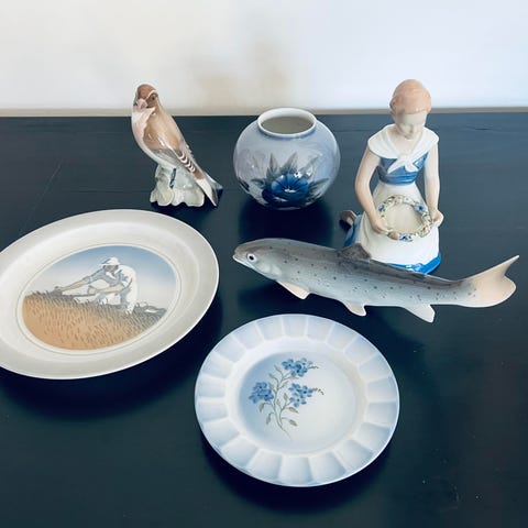 Blandede vaser og fade fra Bing & Grøndal og Royal Copenhagen.