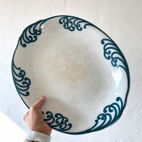 Servantefad, Fajance, 130 år gl., Theodor Paetsch fad. Stort og uden skår i kanten. Et lille ubetydeligt og usynligt skår underneden.
