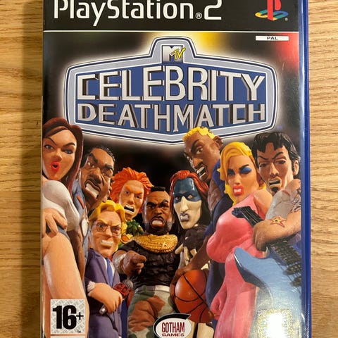Celebrity Deathmatch PlayStation 2 spil. Spillet er designet til PlayStation 2 konsollen og indeholder karakterbaseret kampspil med kendte figurer i animeret stil. Passer til brugere over 16 år ifølge aldersmærkning.