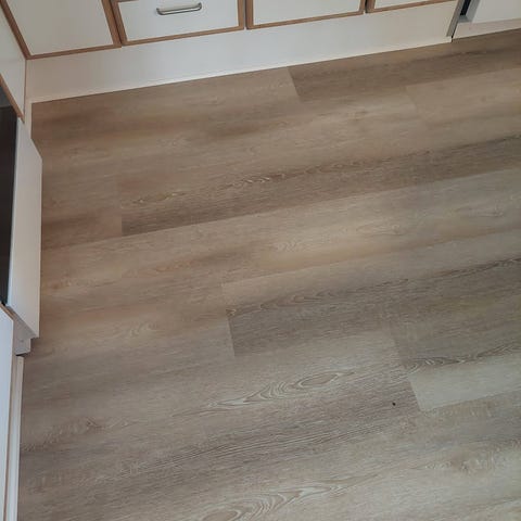 Wicanders Eco Quartz Oak gulvplanker med en slidstyrke på 0,5 mm og en kerne tykkelse på 1,3-2,2 mm. Størrelse pr. planke er 1220x150 mm. Gulvplankerne har en samlet tykkelse på 6,5 mm og er designet til brug med gulvvarme. Farve: Quartz Oak.