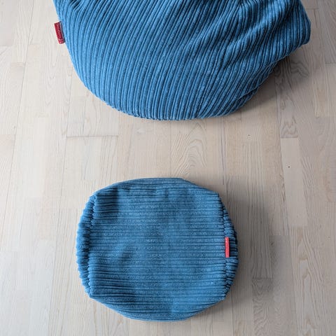 Sækkestolen er lavet af blødt plysstof og meget holdbart takket være den vævede struktur nedenunder.