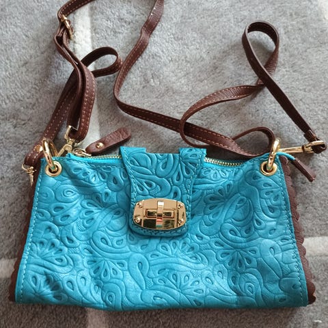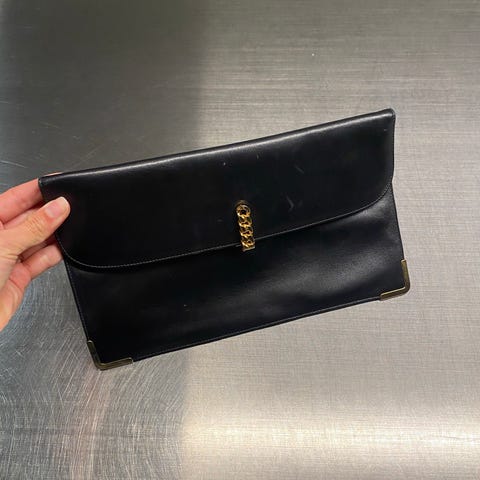 Andet, Clutch, Clutch i sort skind med aftagelig skulderrem, kun brugt få gange. Kan sendes på købers regning