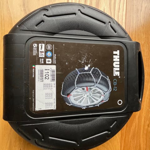 Thule CB-12 snekæder til dæk i størrelsen 265/70 R16. Kæderne er lavet af metal og leveres i en opbevaringskasse. Designet til at forbedre vejgreb under vinterforhold.