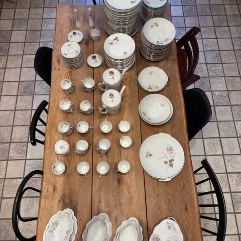 9 ekstra tallerkener, 2 underkopper og 1 kop med fejl kan medfølge gratis.