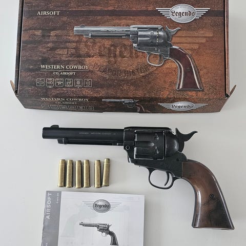 Revolveren er fremstillet helt i metal og kommer fabriks ny. Den har aldrig skudt.
