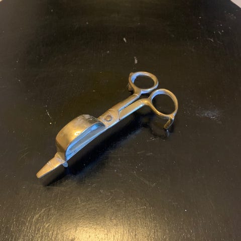 lyseslukker 75kr made in Sweeden, til at slukke stearinlys længde 27 cm og en saks til 45