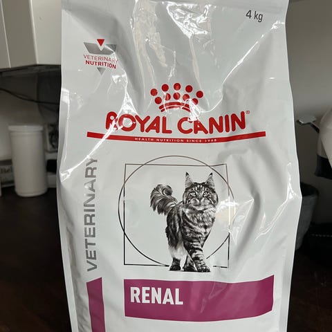 Ny og uåbnet pose med 4 kg foder til kat med nyre problemer.