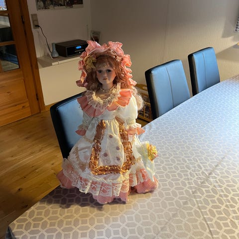 Dukker, Pyntedukke, Jeg sælger denne yndige dukke som Er brugt, men absolut velholdt. Købte den på et loppemarked.
