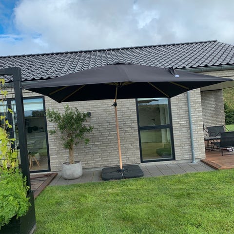 Hængeparasol med fod og overtræk