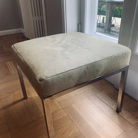 Skamlen kan bruges som ekstra siddeplads, sidebord i stuen, eller som et natbord i soveværelset, hvor den tilfører rummet et moderne og personligt præg.