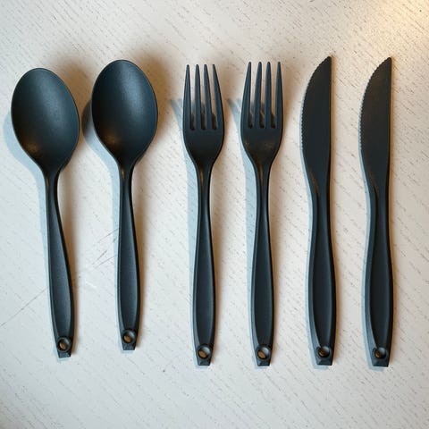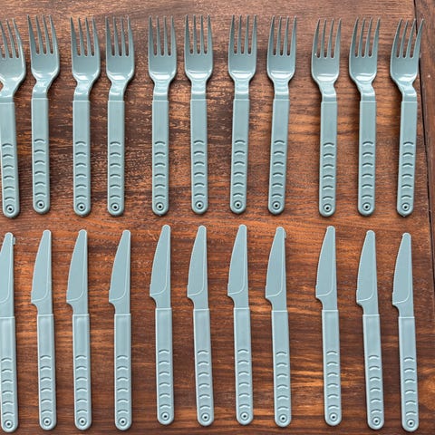 Bestik, Plastik bestik, Rødt plastik bestik til f.eks camping. Retro.