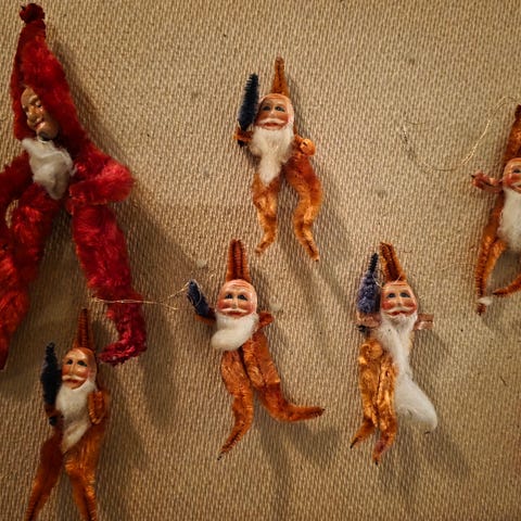 To gamle nisser fra ca 1925, en nissekone (ca 80 cm høj) og en nissedreng uden hoved. Har været udstillet i sportsforretningen Ludvig Næss i Larvik, Norge. Begge er naturlig mærket af tidens tand. Sælges samlet for kr 1499,-