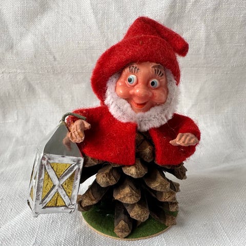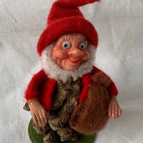 Skøn gammel koglenisse med et herligt ansigtsudtryk.