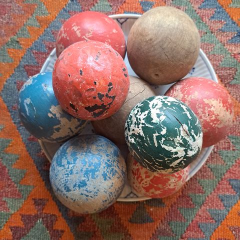 Spil, leg m 13 træmænd, 3 kugler, vælteleg.