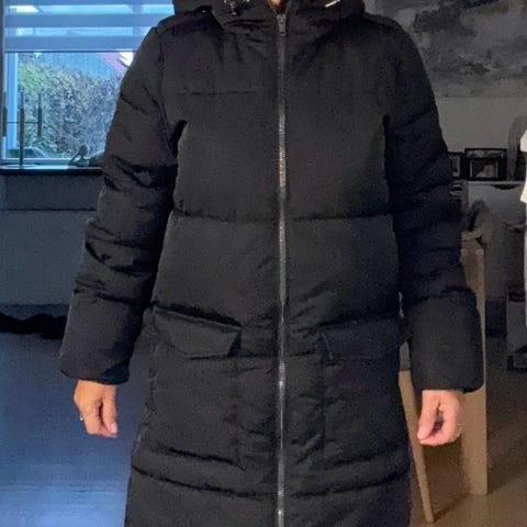 Har taget den på kun en enkelt gang i meget kort tid så det er helt ny. Størrelsen er small men passer også medium.