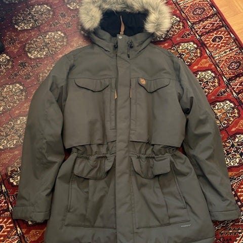 Jakke er nogle få år gammel men stort set ikke brugt, så derfor som ny. Den er lidt stor i størrelsen, så hvis du normalt bruger Large vil jeg mene den passer. Pris på tilbud i dag er 2.898 kr.