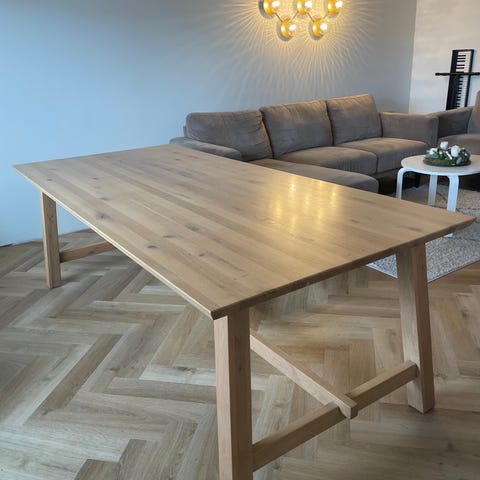 Massivt træbord i hvidt med 5 stole
