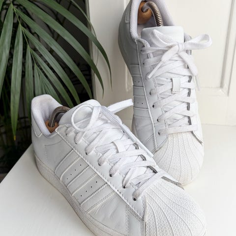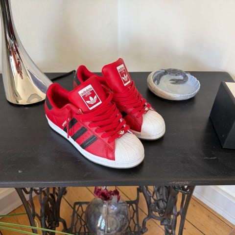 Sjælden udgave af Adidas Superstar med farvede Trefoil-detaljer på striberne – super fed model og i utrolig pæn stand.