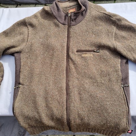 Härkila striktrøje til herre str L i grøn farve, lavet af uldmateriale. Trøjen har rund halsudskæring og ribstrikkede kanter ved ærmer og liv. Velegnet til udendørs brug og som mellemlag i koldt vejr. Helt ny fod gave og aldrig brugt.