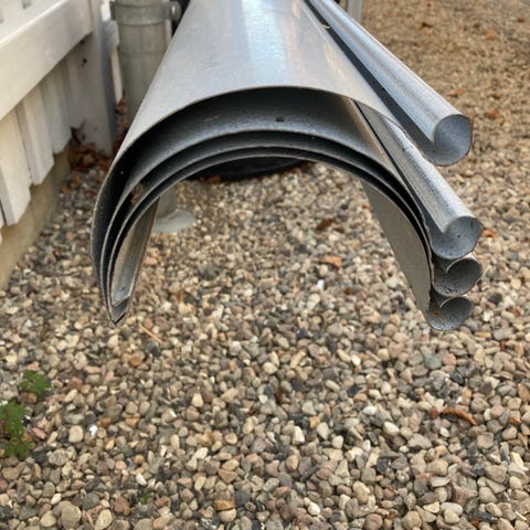 Helt nye Aluzink tagrender, længde 5 m, den ene har hul til nedløbsrør 65 cm fra ende.