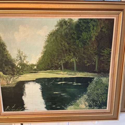 OlieMaleri af Karl Wolf: motiv fra Mølleåen “Nordsjælland” 70 x 60 cm