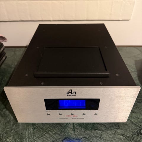 I modsætning til mange fabriksproducerede AN-E er dette sæt med frontstof, som beskytter mod sol/nysgerrige fingre. Fineren er eg/valnød. Der er let solblegning på toppen af den ene, men ikke noget man lægger mærke til, når de står adskilt. Stik er lækre Audio Note stik.