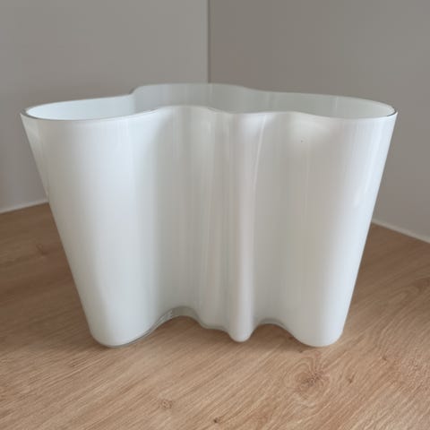 littala Alvar Aalto vase i hvid glas 12 cm med karakteristisk bølget form.