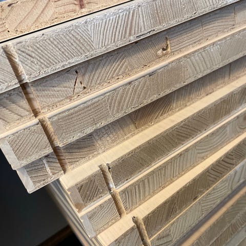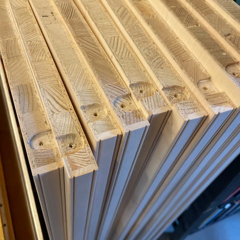 Hylden er lavet af sort anodiseret aluminium og massiv olieret valnød.