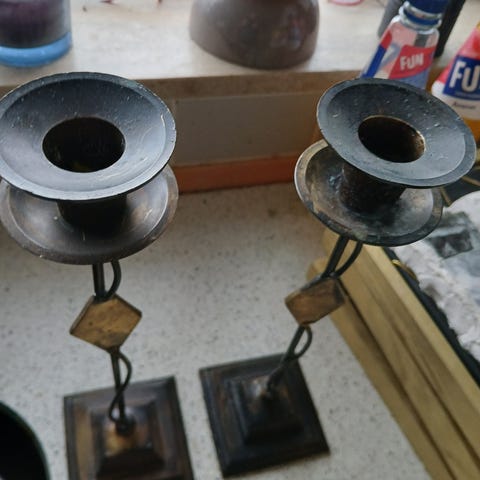 Min tip oldemors flotte gamle antikke stager, 35 cm høje og 20 cm bredde hvor de er bredest.