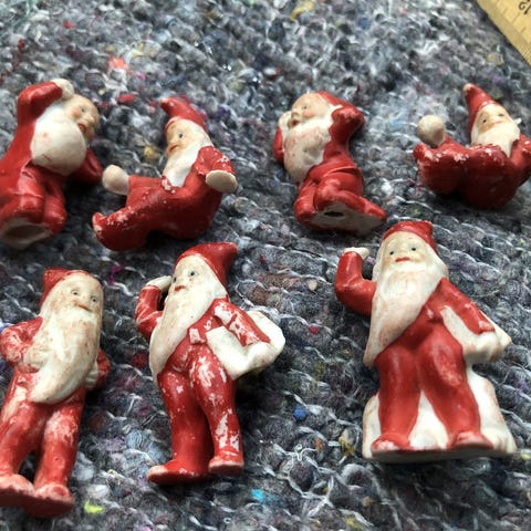 Tre gamle "tykke" orkesternisser i biskuit. Højde 4,5 cm.