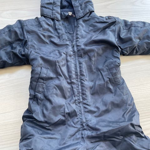 str. 3 år, todelt flyverdragt/skidragt, str. 98, varm og funktionel med seler i bukserne og lækre detaljer. Perfekt til børnehaven/vuggestuen, mærke Mads og Mette, derudover medfølger regnjakke, kan afhentes i København, Frederiksberg eller Farum, sendes også gerne, samlet: