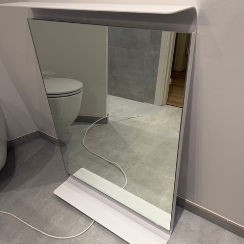 Helt nyt, aldrig brugt. I originalpakning. Lækkert badeværelsesspejl fra Artforma. 80 cm bred og 100 cm høj. Dual colour LED lys samt varmemåtte (så det ikke dugger). Monteringssæt og manual medfølger.