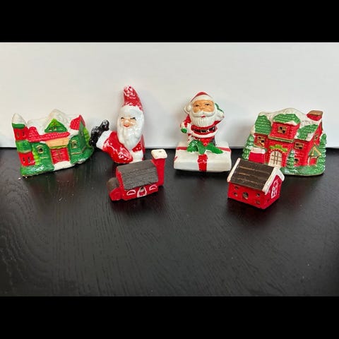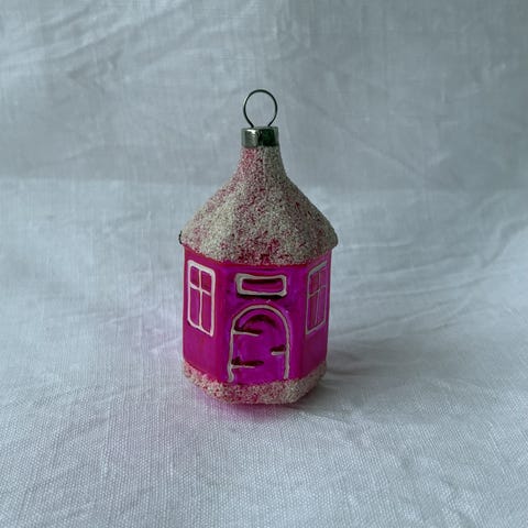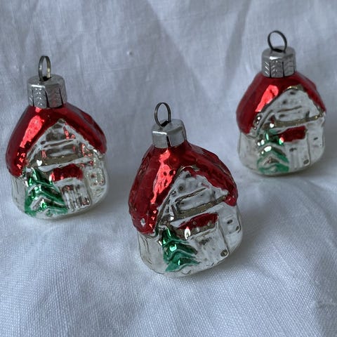 Smukke vintage julehuse i glas. De fine julehuse har mange fine håndmalede detaljer og er dekoreret med sneglimmer.